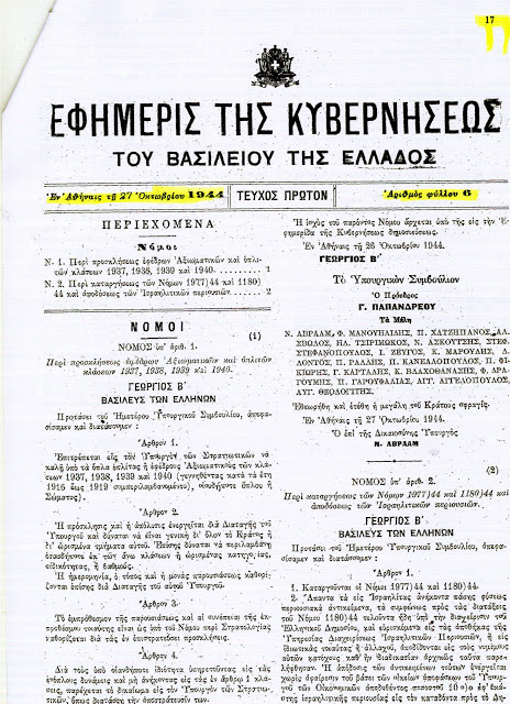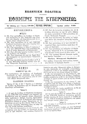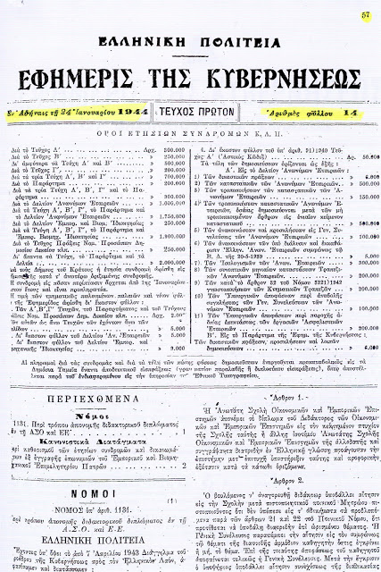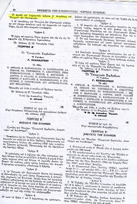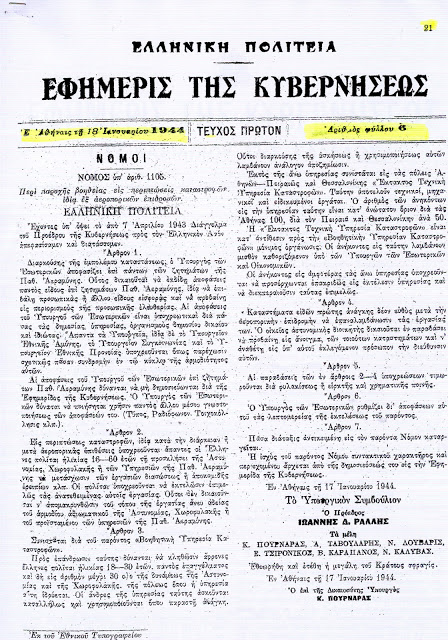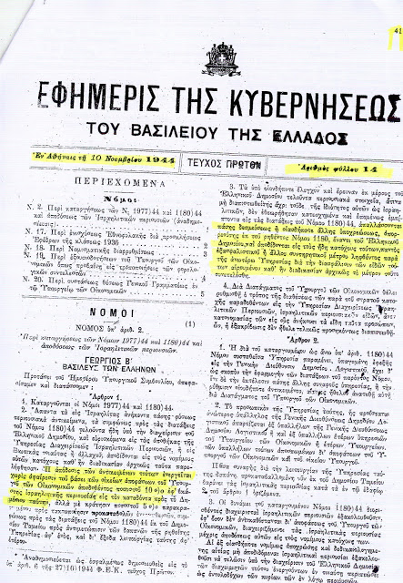 Στο ΦΕΚ 26 που αφορά στο νόμο 1180/44 αναφέρεται: