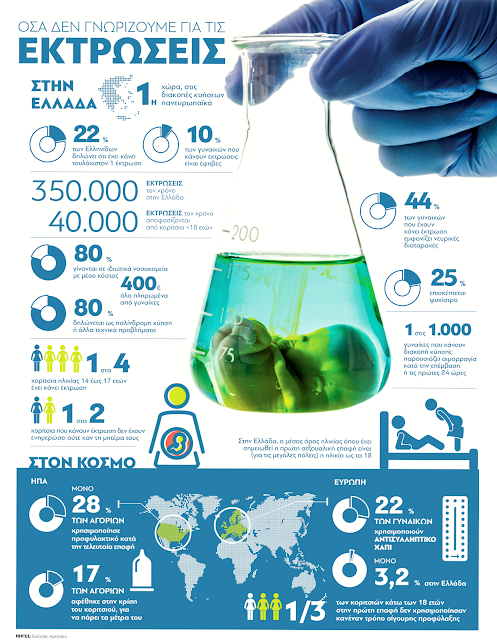Το σπουδαιότερο είναι πως οι Ελληνίδες «εκτινάσσουν» το μέσο όρο στις εκτρώσεις, καθώς το 22% αυτών έχει προχωρήσει έστω και μία φορά σε διακοπή κύησης, όταν στην υπόλοιπη Ευρώπη το αντίστοιχο ποσοστό αφορά μόνο στο 2% των γυναικών.