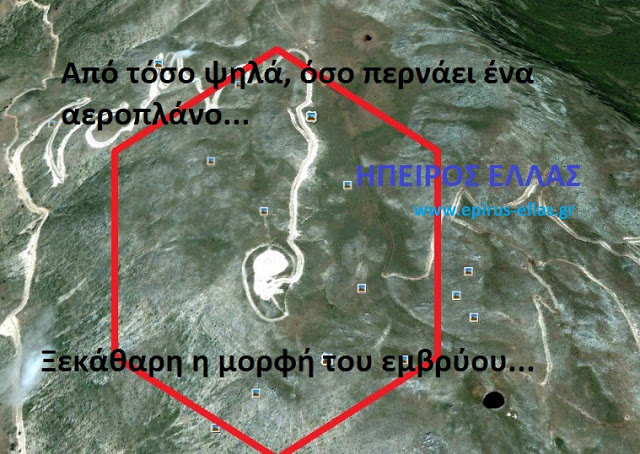 Εξελίξεις είχαμε έπειτα από το άρθρο-αποκάλυψή μας στις 28/11/2012 με τίτλο “ΑΠΟΚΑΛΥΨΗ: “Σημείο αναφοράς” για εξωγήινους, για τους ΕΛ ή στρατιωτικό μυστικό σχέδιο σε βουνό των Ιωαννίνων; ” και που δημοσιεύαμε φωτογραφίες από βουνό των Ιωαννίνων που δείχνουν πως στρατιωτική περιοχή έχει τη μορφή εμβρύου μέσα στη μήτρα και μάλιστα να φαίνεται πεντακάθαρα ο πλακούντας και ο ομφάλιος λώρος.