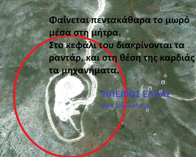 Εξελίξεις είχαμε έπειτα από το άρθρο-αποκάλυψή μας στις 28/11/2012 με τίτλο “ΑΠΟΚΑΛΥΨΗ: “Σημείο αναφοράς” για εξωγήινους, για τους ΕΛ ή στρατιωτικό μυστικό σχέδιο σε βουνό των Ιωαννίνων; ” και που δημοσιεύαμε φωτογραφίες από βουνό των Ιωαννίνων που δείχνουν πως στρατιωτική περιοχή έχει τη μορφή εμβρύου μέσα στη μήτρα και μάλιστα να φαίνεται πεντακάθαρα ο πλακούντας και ο ομφάλιος λώρος.
