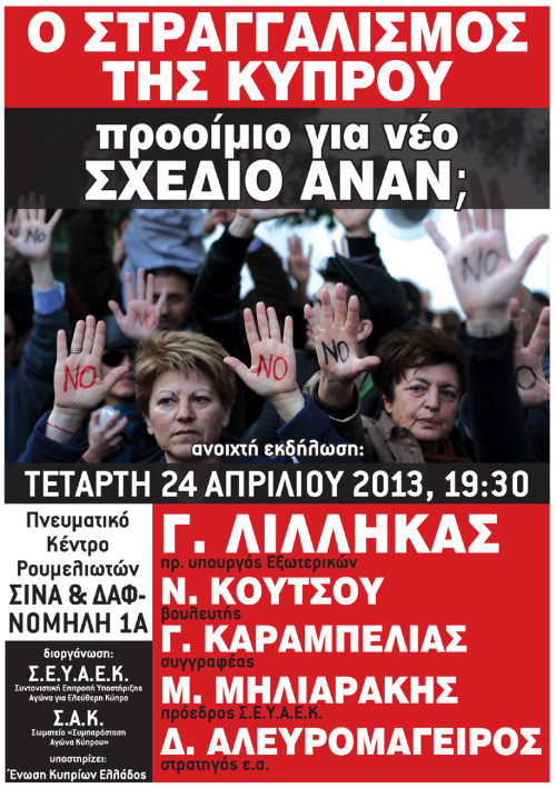 Ο ΣΤΡΑΓΓΑΛΙΣΜΟΣ ΤΗΣ ΚΥΠΡΟΥ, ΠΡΟΟΙΜΙΟ ΓΙΑ ΝΕΟ ΣΧΕΔΙΟ ΑΝΑΝ; (ΕΚΔΗΛΩΣΗ)