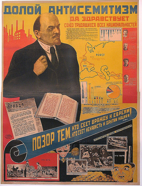 Παρακάτω αφίσα “κατά του αντισημιτισμού” της σοβιετικής εποχής. Δείτε το βίντεο με τον Λένιν στο τέλος.