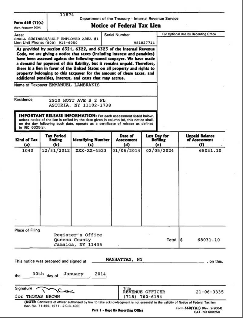Ρε Μάκη, γιατί δεν στάζεις και κανένα εκατομμυριάκι η δυο για τον Μανωλιό; Το παιδί-θαύμα χρωστάει στην αμερικανικη εφορία 1,4 εκατομμύρια. Ορίστε η τελευταία φορολογική εκκρεμότητα που δημοσίευσε η IRS πριν λίγες εβδομάδες. 68 και κάτι: