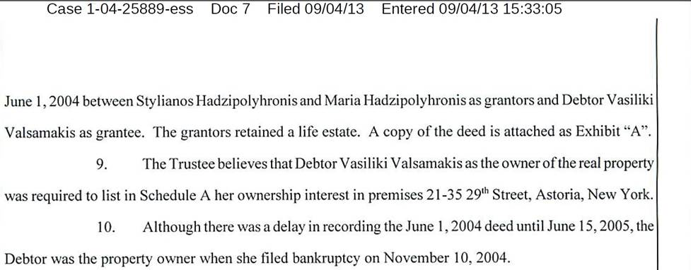Έχουμε και τον Βαλσαμάκη. Ο σώγαμπρος και η γυναίκα του κληρονόμησαν το σπίτι τους στην Αστόρια από τα πεθερικά του. Αλλά όταν ο Αντωνάκης και η γυναίκα/γραμματέας δηλωσαν πτώχευση, “ξέχασαν” να δηλώσουν το ακίνητο ως περιουσιακό στοιχείο: