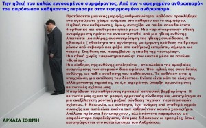 Ημερολόγιο ΆρθρωνΑΝΑΚΟΙΝΩΣΗΕνημερώνω τους φίλους αναγνώστες ότι κείμενα που είναι σε άλλη γλώσσα γραμμένα και δεν συνοδεύονται από την Ελληνική μετάφραση δεν θα ανακοινώνονται, Ευχαριστώ!