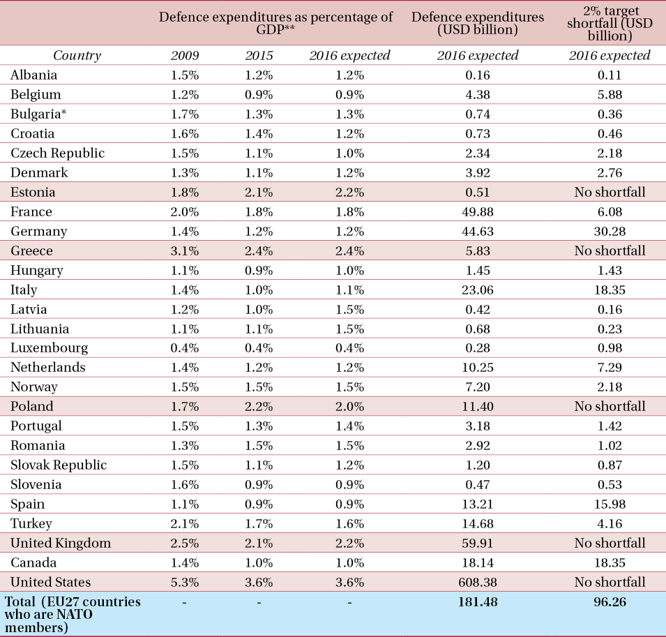 Σημειώνεται ότι το ΝΑΤΟ προβλέπει ότι οι χώρες που συμμετέχουν στη Συμμαχίαθα αυξήσουν τις δαπάνες για την Άμυνα μέσα στο 2016, κυρίως λόγω της προσφυγικής κρίσης και των ανησυχιών για μία πιθανή ρωσική απειλή.