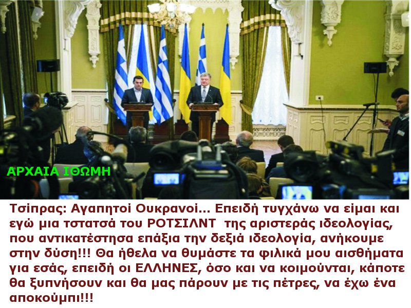 Ο Τσίπρας αποφάσισε- κατόπιν διαταγής ΡΟΤΣΙΛΝΤ- να κάνει διήμερον επίσημο ταξείδι στην Ουκρανία του Σιωνιστή Νεο-Ναζί Ποροσένκο.