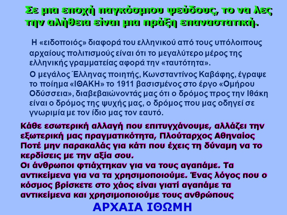 Ενημερώνω τους φίλους αναγνώστες ότι κείμενα που είναι σε άλλη γλώσσα γραμμένα και δεν συνοδεύονται από την Ελληνική μετάφραση δεν θα ανακοινώνονται, Ευχαριστώ!