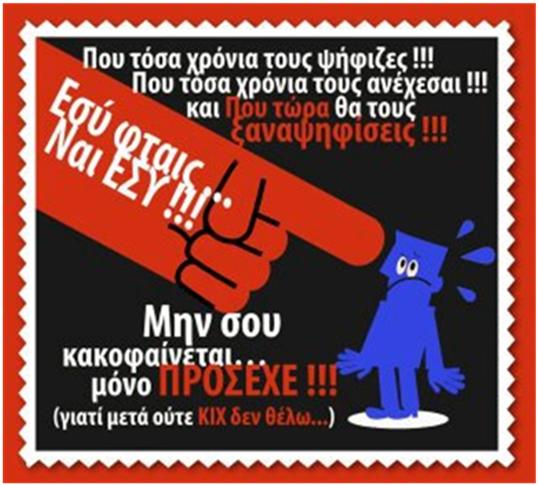 Ψηφίζοντας αυτούς τους πολιτικούς απαταιώνες-προδότες, γέμισες την Πατρίδα σου με Σιωνιστικές Μ.Κ.Ο.- λαθρομετανάστες- διεθνείς ΡΟΜΑ-Αλβανούς-Ρουμάνους, διεθνείς πράκτορες κουκουλοφόρους, κ.λ.π. που σε ληστεύουν, σε σκοτώνουν, και σου παίρνουν το σπίτι σου.