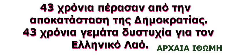 43 χρόνια Δημοκρατίας οδήγησαν την Ελλάδα στην καταστροφή, οι πολιτικοί απατεώνες, δούλοι της ΕΛΙΤ των Κοσμοκρατόρων.