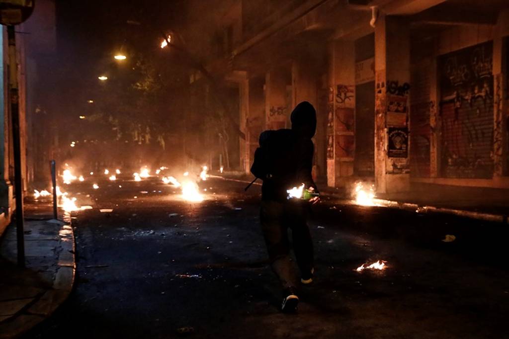 Διαδηλωτές πετούν  βόμβες μολότοφ  κατά τη διάρκεια επεισοδίων που σημειώθηκαν  μετά το τέλος της πορείας της 44ης επετείου της εξέγερσης του Πολυτεχνείου το 1973,  στην Αθήνα, Παρασκευή 17 Νοεμβρίου 2017. Επεισόδια σημειώθηκαν στη λεωφόρο Αλεξάνδρας, μεταξύ αντιεξουσιαστών και αστυνομικών, μετά την ολοκλήρωση της πορείας για το Πολυτεχνείο.  ΑΠΕ ΜΠΕ /ΑΠΕ ΜΠΕ/ΓΙΑΝΝΗΣ ΚΟΛΕΣΙΔΗΣ