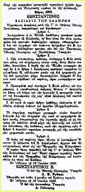 Σε μια στιγμή που διαφαινόταν ότι ήταν πλέον θέμα χρόνου η κατάρρευση του μετώπου και η Μικρασιατική Καταστροφή, η φιλοβασιλική κυβέρνηση ψήφισε νόμο με τον οποίο έκλεινε προληπτικά στους αναμενόμενους πρόσφυγες την καταφυγή στην Ελλάδα.