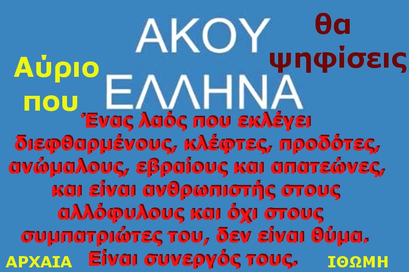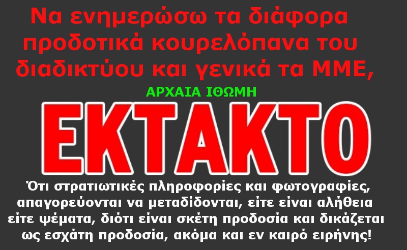 Ο διαχειριστής τού παρόντος ιστολογίου παρακαλεί τούς σεβαστούς αναγνώστες όπως σε τυχόν σχόλιά τους να χρησιμοποιούν την Ελληνική γραφή.