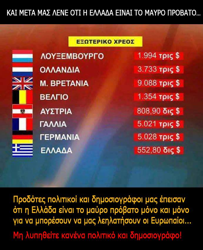 Τα χρήματά σας, ο ιδρώτας σας, και το μέλλον των παιδιών σας πρέπει να μένουν στην ΕΛΛΑΔΑ. Πάντα και παντού, όσο μπορούμε, να αναζητούμε τα Ελληνικά προϊόντα και τις πραγματικές Ελληνικές επιχειρήσεις για να δίνουμε τον οβολό μας. Κάθε Ευρώ που φεύγει εκτός, δεν επιστρέφει ποτέ. Δεν θα ενισχύσουμε εμείς την κερδοφορία εταιρειών που προτιμούν χώρες με τριτοκοσμικές εργασιακές σχέσεις για να παράγουν φθηνά. Ακριβώς αυτό που θέλουν να κάνουν στην Ελλάδα δηλαδή αποικία τους.