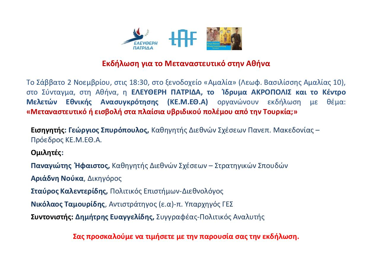 Αυτό είναι το θέμα της εκδήλωσης που προγραμματίστηκε για το Σάββατο 2 Νοεμβρίου στις 18:30 στο ξενοδοχείο Αμαλία, στο Σύνταγμα, στην Αθήνα.