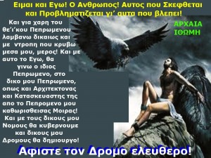 Η ΑΡΧΑΙΑ ΙΘΩΜΗ δεν ανάγκασε ποτέ κανένα να κάνει κάτι με παραπλανητικές μεθόδους, αλλά ούτε με οποιοδήποτε τρόπο. Ο γράφων είμαι ένας ανήσυχος ερευνητής της αλήθειας. Και αυτό το κάνω με νόμιμο τρόπο. Τι σημαίνει αυτό; ότι έχω μαζέψει πληροφορίες επιστημονικές και τις παρουσιάζω, ή αυτούσιες, ή σε άρθρο μου που έχει σχέση με αυτές τις πληροφορίες! Ποτέ δεν θεώρησα τους αναγνώστες μου ηλίθιους ή βλάκες και ότι μπορώ να τους επιβάλω την γνώμη μου. Αυτοί που λένε ότι κάποια ιστολόγια παρασέρνουν τον κόσμο να μην πειθαρχεί… Για ποιο κόσμο εννοούν;;; Δηλαδή εκ προοιμίου θεωρούν τον κόσμο βλάκα, ηλίθιο και θέλουν να τον προστατέψουν;;; Ο νόμος αυτό το λέει για τους ανώριμους ανήλικους. Για τους ενήλικους λέει ότι είναι υπεύθυνοι για ότι πράττουν. Στον ανήλικο χρειάζεται ένας διπλωματούχος ιδικός για να τον δασκαλέψει, καθηγητής, δάσκαλος. Στους ενήλικες δεν υπάρχει περιορισμός. Ποιος λέει και ποιος ακούει, διότι ο καθένας ενήλικος είναι υπεύθυνος και προς τους άλλους και προς τον εαυτό του.