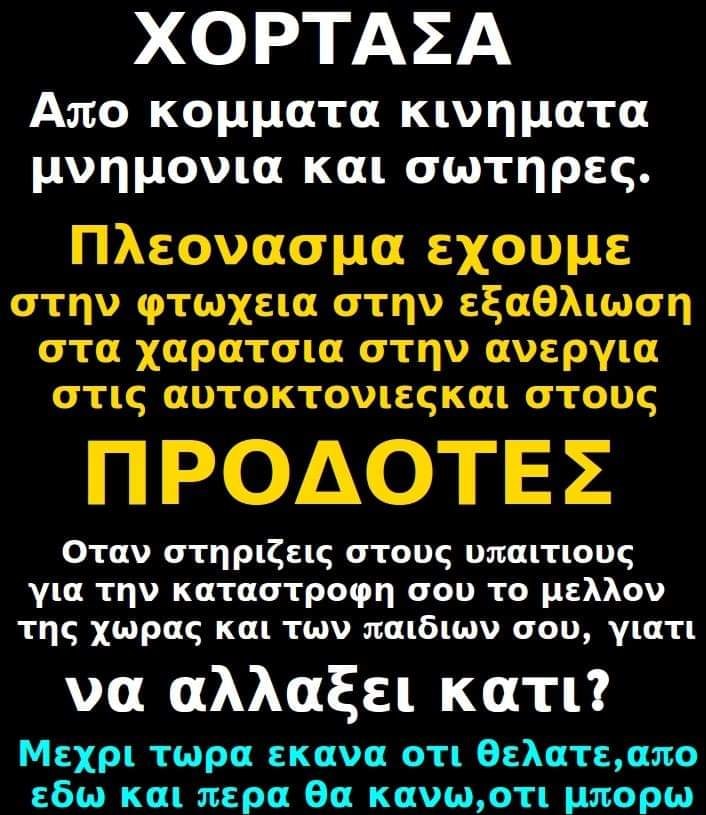 ΕΝΗΜΕΡΩΣΗ Ενημερώνω άπαντες, ότι μηνύματα που είναι στα αγγλικά, ή σε οποιαδήποτε άλλη γλώσσα εκτός από τα Ελληνικά δεν ξέρω για να τα διαβάζω. Για αυτό αν δεν είναι στα Ελληνικά, δεν φέρω καμία ευθύνη για οτιδήποτε που θα είναι σε άλλη γλώσσα, όποιος θέλει να με ενημερώσει, να ρωτήσει, να καταγγείλει, ή οτιδήποτε άλλο, μόνο στα Ελληνικά. Ευχαριστώ.