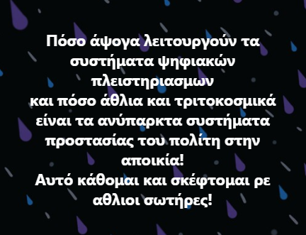 ΕΝΗΜΕΡΩΣΗ Ενημερώνω άπαντες, ότι μηνύματα που είναι στα αγγλικά, ή σε οποιαδήποτε άλλη γλώσσα εκτός από τα Ελληνικά δεν ξέρω για να τα διαβάζω. Για αυτό αν δεν είναι στα Ελληνικά, δεν φέρω καμία ευθύνη για οτιδήποτε που θα είναι σε άλλη γλώσσα, όποιος θέλει να με ενημερώσει, να ρωτήσει, να καταγγείλει, ή οτιδήποτε άλλο, μόνο στα Ελληνικά. Ευχαριστώ.