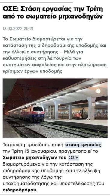 Ένας απλός άνθρωπος θα τον ρωτήσει, έχετε υπουργώ μεταφορών, έχετε χιλιάδες παρατρεχάμενους στο υπουργείο και σε όλο το φάσμα για την ομαλή λειτουργία των τρένων, δηλώνατε δεξιά και αριστερά για τη σοβαρή δουλειά στα τρένα και με ευρωπαϊκές επιχορηγήσεις, ώστε να σας εμπιστευτεί ο πολίτης που θα προτιμούσε το τρένο ως ασφαλές που του το εγγυόσαστε / και δεν είχατε σήμανση/ και δεν είχατε δικλίδες ασφαλείας, όχι μια, αλλά πολλές, για να μην κινδυνέψει ούτε επιβάτης, αλλά ούτε από το προσωπικό;;;;;;;;;;;;