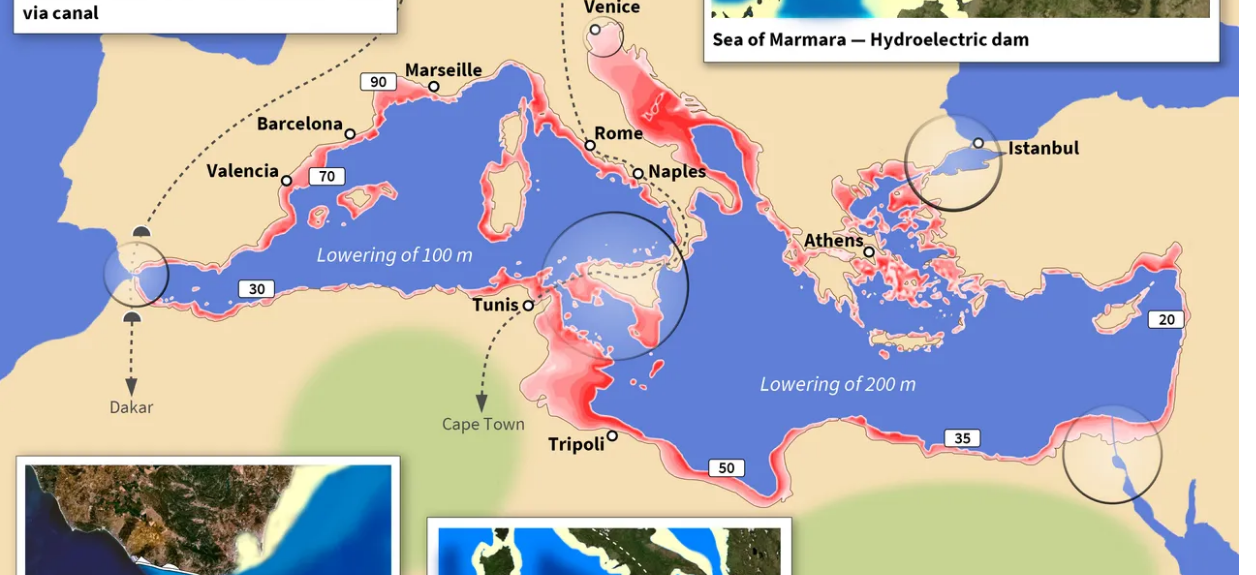 Inside Atlantropa, The 1920s Plan To Drain The Mediterranean And Merge Europe And Africa Into One Supercontinent (https://allthatsinteresting.com/atlantropa).