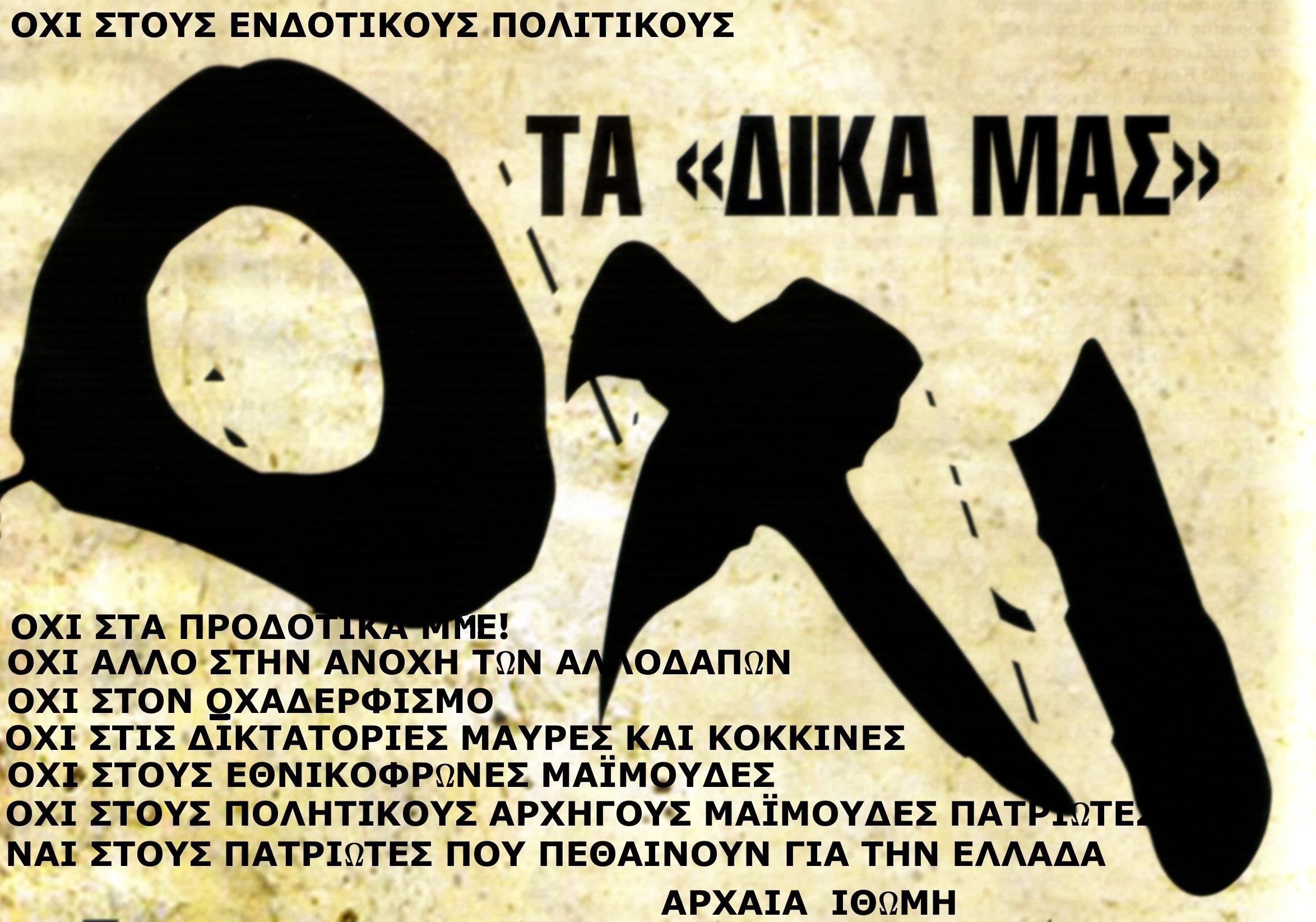Τα χρήματά σας, ο ιδρώτας σας, και το μέλλον των παιδιών σας πρέπει να μένουν στην ΕΛΛΑΔΑ. Πάντα και παντού, όσο μπορούμε, να αναζητούμε τα Ελληνικά προϊόντα και τις πραγματικές Ελληνικές επιχειρήσεις για να δίνουμε τον οβολό μας. Κάθε Ευρώ που φεύγει εκτός, δεν επιστρέφει ποτέ. Δεν θα ενισχύσουμε εμείς την κερδοφορία εταιρειών που προτιμούν χώρες με τριτοκοσμικές εργασιακές σχέσεις για να παράγουν φθηνά. Ακριβώς αυτό που θέλουν να κάνουν στην Ελλάδα δηλαδή αποικία τους.