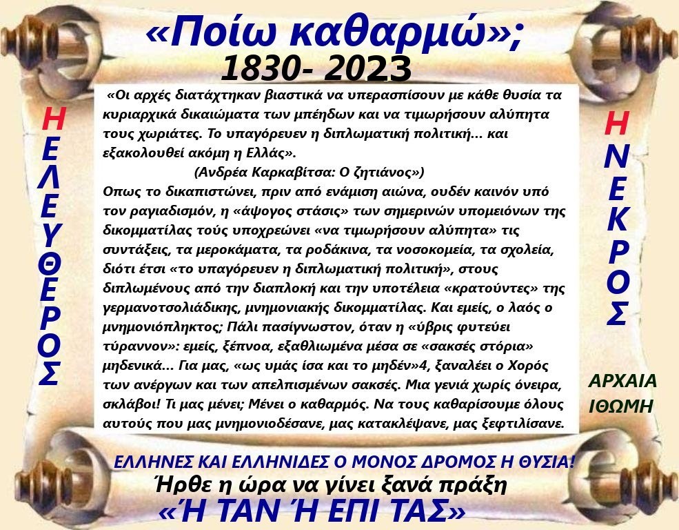 Προς ενημέρωση στους αναγνώστες. 4/8/2020 Η ΑΡΧΑΙΑ ΙΘΩΜΗ δεν ανάγκασε ποτέ κανένα να κάνει κάτι με παραπλανητικές μεθόδους, αλλά ούτε με οποιοδήποτε τρόπο. Ο γράφων είμαι ένας ανήσυχος ερευνητής της αλήθειας. Και αυτό το κάνω με νόμιμο τρόπο. Τι σημαίνει αυτό; ότι έχω μαζέψει πληροφορίες επιστημονικές και τις παρουσιάζω, ή αυτούσιες, ή σε άρθρο μου που έχει σχέση με αυτές τις πληροφορίες! Ποτέ δεν θεώρησα τους αναγνώστες μου ηλίθιους ή βλάκες και ότι μπορώ να τους επιβάλω την γνώμη μου. Αυτοί που λένε ότι κάποια ιστολόγια παρασέρνουν τον κόσμο να μην πειθαρχεί… Για ποιο κόσμο εννοούν;;; Δηλαδή εκ προοιμίου θεωρούν τον κόσμο βλάκα, ηλίθιο και θέλουν να τον προστατέψουν;;; Ο νόμος αυτό το λέει για τους ανώριμους ανήλικους. Για τους ενήλικους λέει ότι είναι υπεύθυνοι για ότι πράττουν. Στον ανήλικο χρειάζεται ένας διπλωματούχος ιδικός για να τον δασκαλέψει, καθηγητής, δάσκαλος. Στους ενήλικες δεν υπάρχει περιορισμός. Ποιος λέει και ποιος ακούει, διότι ο καθένας ενήλικος είναι υπεύθυνος και προς τους άλλους και προς τον εαυτό του.