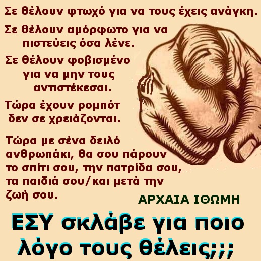 ΑΝΑΚΟΙΝΩΣΗ Ενημερώνω τους φίλους αναγνώστες ότι κείμενα που είναι σε άλλη γλώσσα γραμμένα και δεν συνοδεύονται από την Ελληνική μετάφραση δεν θα ανακοινώνονται, Ευχαριστώ!