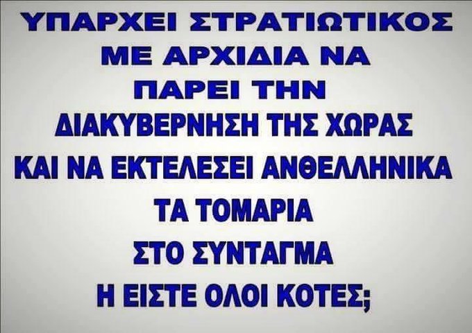 Και υπάρχουν Έλληνες “επαΐοντες” που πιστεύουν και μας συμβουλεύουν ότι η Ελλάδα δεν μπορεί να κρατήσει τα νησιά και τη θάλασσά της και δεν μπορεί ούτε να βάλει μια φωνή να βγάλει τον Μπελέρη απ’ τη φυλακή ή να διώξει την Τουρκιά από την Κύπρο, γιατί πρέπει να είναι ο τελευταίος ηλίθιος δούλος τής Δύσης, που θα διατηρήσει στη φορμόλη τις παλιές, καλές μέρες του πλανηταρχισμού με τη μονοκρατορία των ΗΠΑ και το τέλος της Ιστορίας.