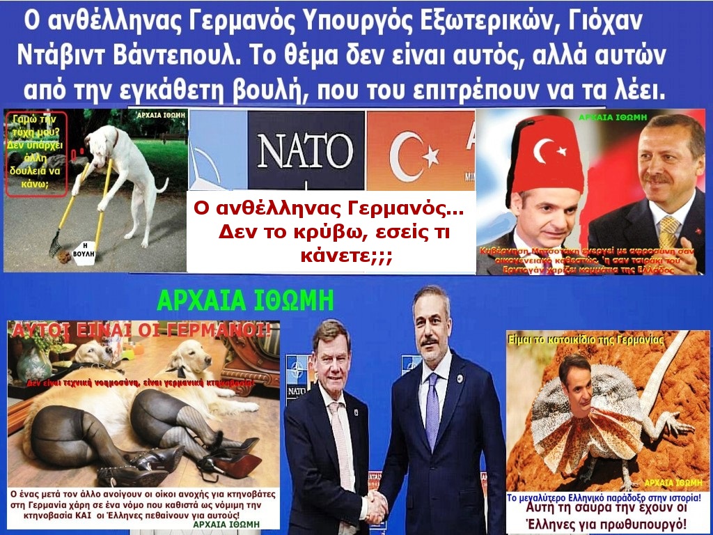 Ο Γερμανός ΥΠΕΞ κ. Γιόχαν Ντάβιντ Βάντεφουλ ένας πραγματικός Γερμαναράς, μόνο η χιτλερική στολή του έλλειπε, έδωσε κατ’ ουσίαν πισώπλατη μαχαιριά κατά της Ελλάδος με αυτά που είπε και με αυτά που παρέλειψε να πει.