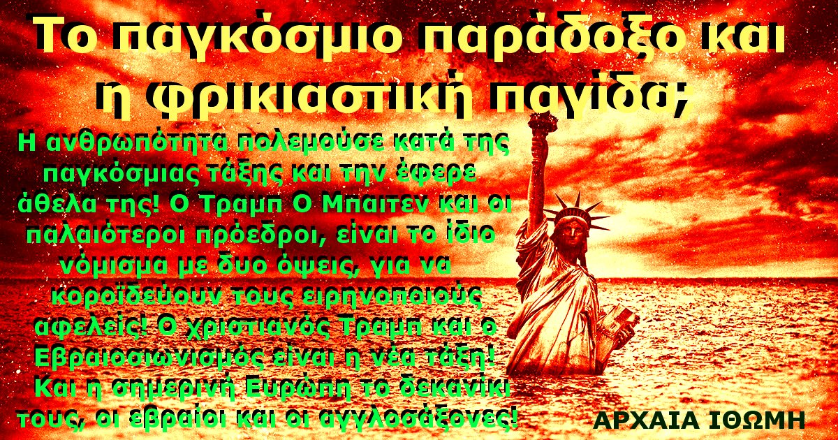 Θα πρέπει να ξεσηκωθούν οι Έλληνες σε όλη τη γη, διότι η Ελλάδα με αυτήν την Εβραϊκή εγκάθετη βουλή, κινδυνεύει με διαμελισμό, αφανισμό/ και μια σκληρή υποδούλωση, διαμελισμό του γηγενή πληθυσμού στα πέρατα της γης, για να κάνουν τα εγκληματικά έκτροπα σε βάρος της Ελλάδος και Ελλήνων!