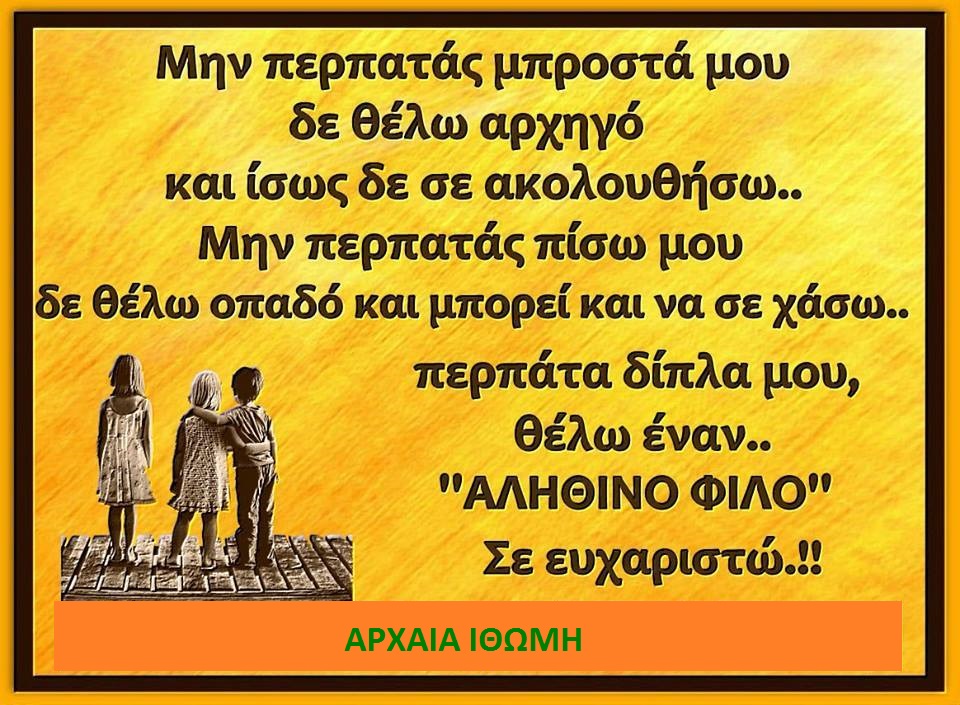 ΑΝΑΚΟΙΝΩΣΗ Ενημερώνω τους φίλους αναγνώστες ότι κείμενα που είναι σε άλλη γλώσσα γραμμένα και δεν συνοδεύονται από την Ελληνική μετάφραση δεν θα ανακοινώνονται, Ευχαριστώ!
